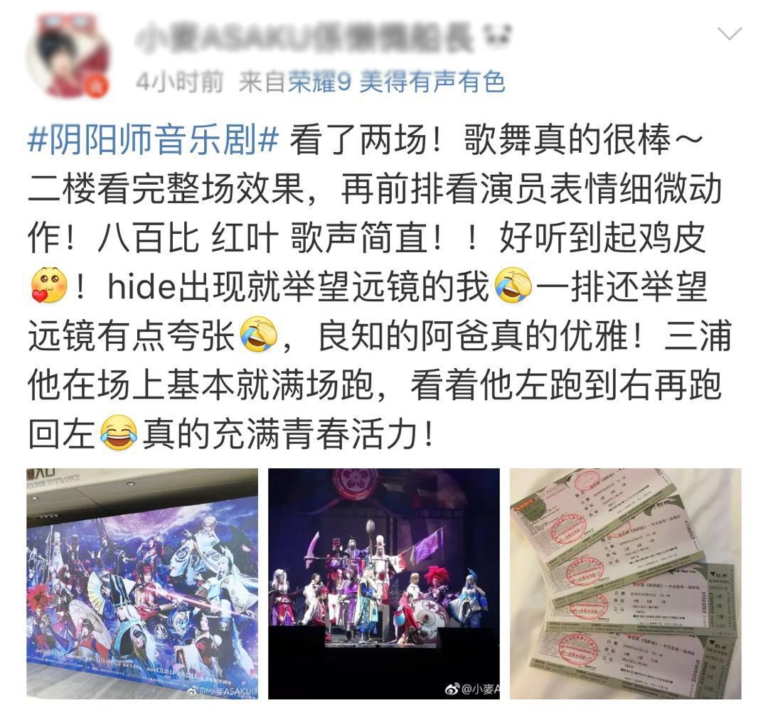 《阴阳师》音乐剧在日本预演的平均上座率超九成,而在深圳这场的演出中,收获了大量粉丝的参与,评价也颇高。