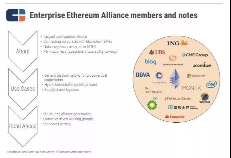 2017年3月,EEA由微软、摩根大通和基于以太坊开发的公司Consensys以及其他一些领域内的顶级参与者共同设立。