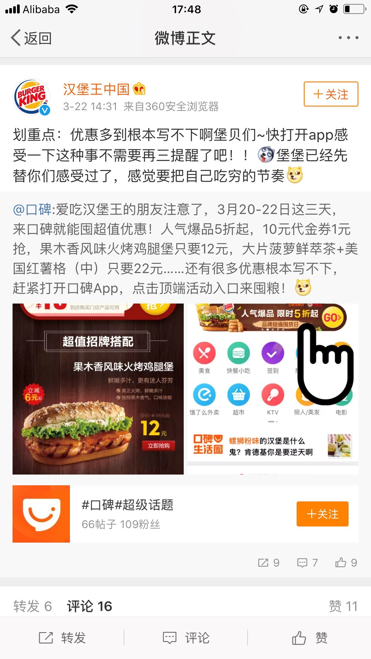 口碑公布的数据来看,商家在“王牌专享日”创造的销售业绩可能仅次于双十二的销售高峰。3月,餐饮连锁品牌汉堡王参与“王牌专享日”,3天的活动时间内,线上累计售卖商品超过10万笔,几乎是品牌同期销量的10倍之多。其中人气单品果木香风味火烤鸡腿堡单日售卖超过3万笔。活动期间,汉堡王GMV同比提升接近580%,笔单价提升了17%。