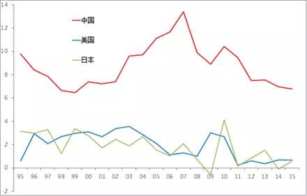 若以就业人数及GDP来衡量劳动生产率水平,则其增速在过去的20年里,美国的中位数水平是2.0%、日本大致是1.7%,而中国则超过了8%。