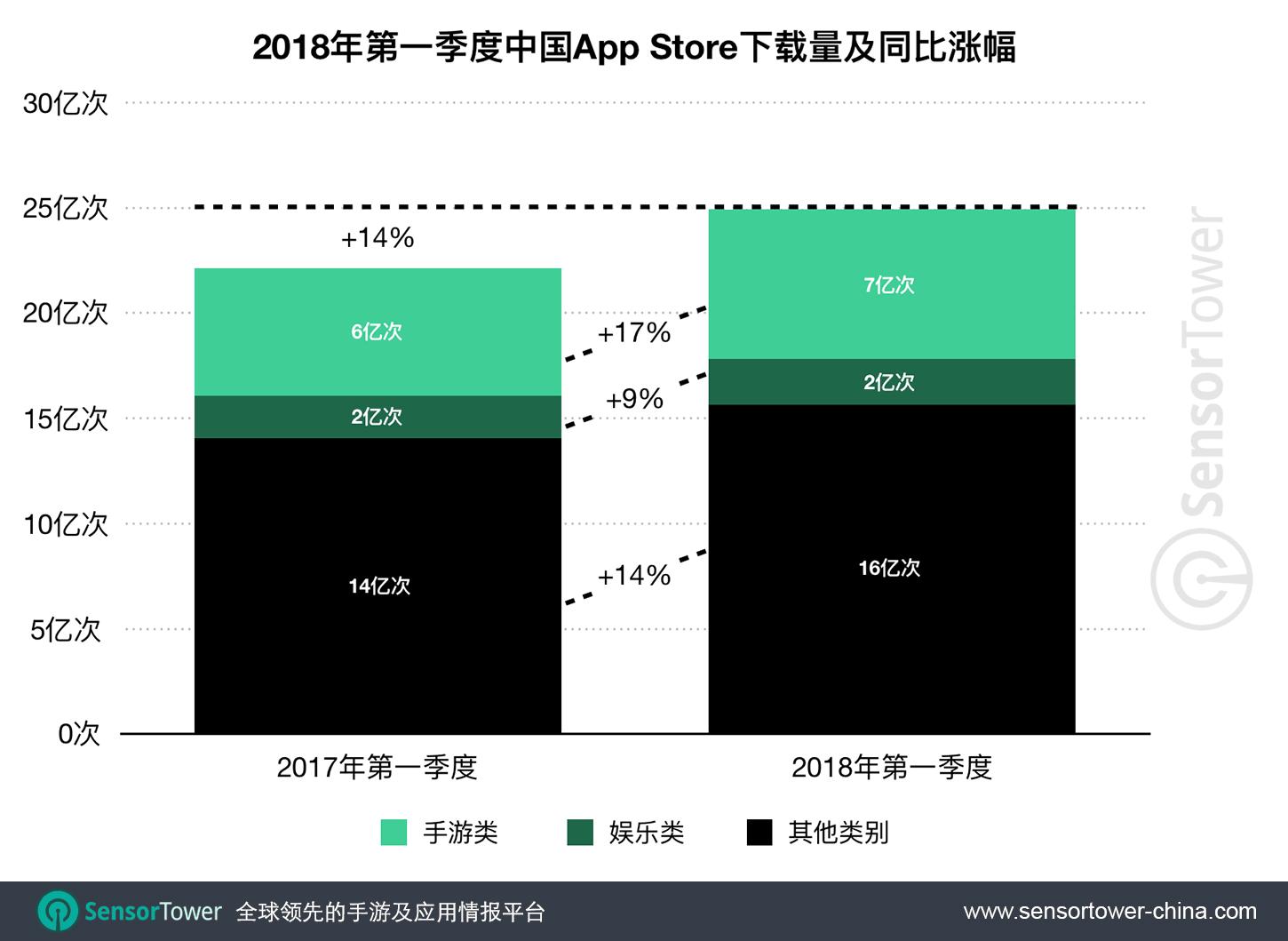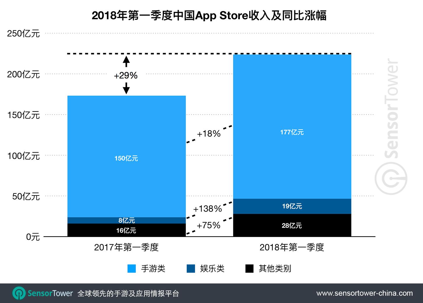 2018一季度中国App Store吸金总量同比增长29%,与下载量一同保持全球iOS市场冠军地位
