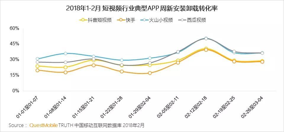 中国移动互联网的竞争是如此的复杂,比如在一众推崇抖音和短视频的文章当中,在给到上面证明抖音下载量巨大,排名霸榜、用户年轻的数据之后,肯定不会告诉你:在下载量巨大背后,卸载率也暴涨,在新增用户增多的同时,转化到日活周活和月活的数据也并不炸裂。大多人用户手机里只装了一个短视频应用,要么是快手,要么是抖音。