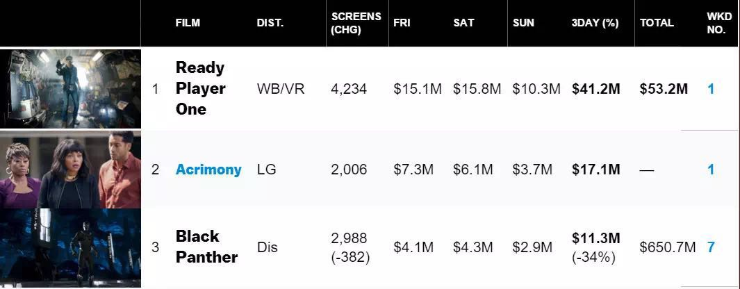 这个时候,华纳兄弟大概已经松了一口气,因为《头号玩家》即将要以5230万美元的首周末成绩超过了它的预测数字——毕竟,对于一部在制作和宣发上实际投入了3亿-3.25亿美元的电影来说,3800万美元到4200万美元之间这个成绩,可以说是惨不忍睹。