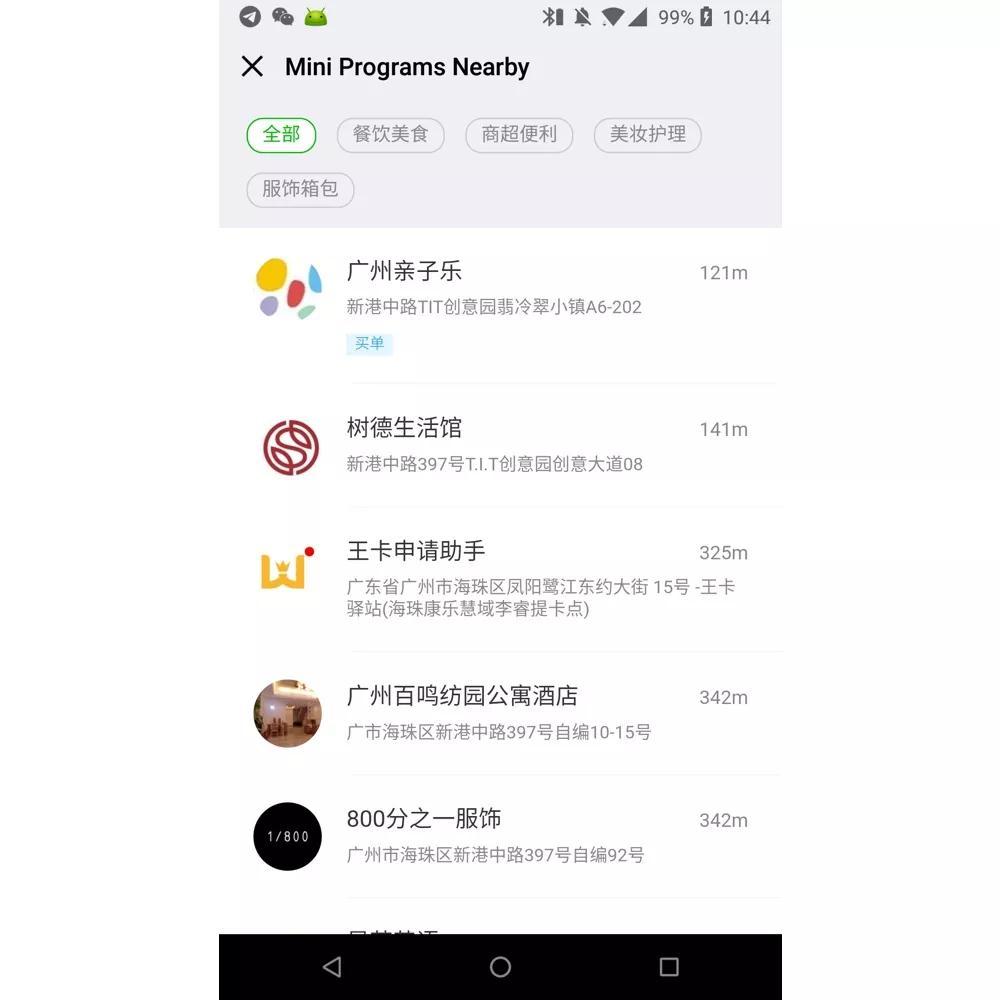 还记得「附近的小程序」功能吗?它的好处是:只要用户在你的门店附近,在小程序列表中,就能在「附近的小程序」右侧,看到你的门店 logo。