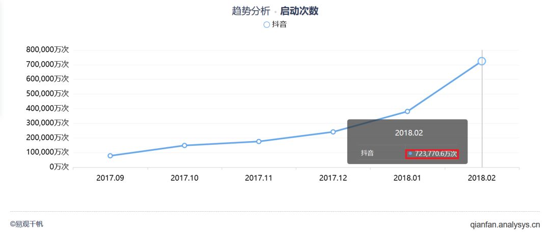 不同于其他短视频平台,抖音从一开始就剑走偏锋,聚焦音乐垂直领域,在推出一系列洗脑神曲的同时配之以各种趣味舞蹈挑战赛,牢牢锁住年轻人的目光。去年8月底,三位抖音红人用《Panama》作为背景音乐拍摄了一支魔性舞蹈视频,并发起了“C哩C哩舞”的挑战吸引用户跟学,迅速引爆全网。此外《爱的就是你》《全部都是你》《小跳蛙》等歌曲也纷纷通过抖音爆红,连林俊杰10年前的老歌《醉赤壁》都因做了BGM而重新响遍大街小巷;海草舞、手指舞、搓澡舞等层出不穷的趣味舞蹈切合年轻人的潮流,使他们一次次打开抖音而欲罢不能。易观千帆数据显示,从2017年9月到今年2月,抖音每月启动次数增长近10倍,用户不仅被拉进来,还成功激活了起来。