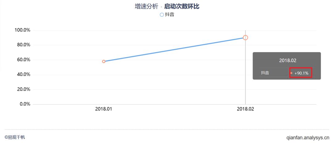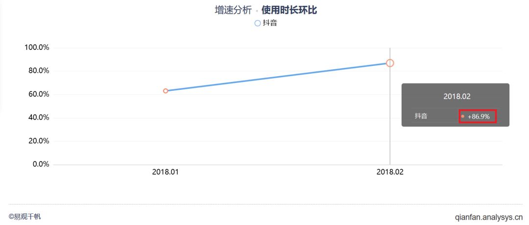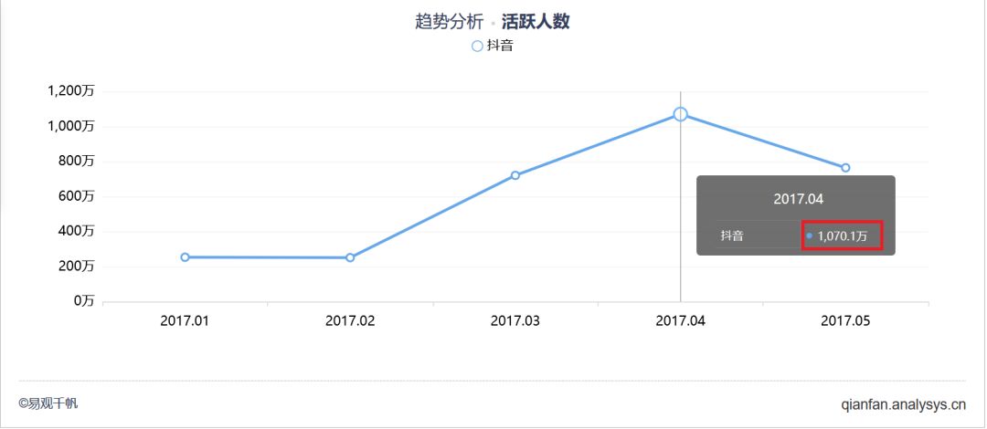 去年年初,抖音尚未采取什么运营大动作,用户增长相对较为缓慢。只是在去年3月份岳云鹏在微博上转发了带有抖音水印的短视频,稍微引起了大家的关注,当月活跃用户增长187.21%,并于次月月活规模突破1000万大关。