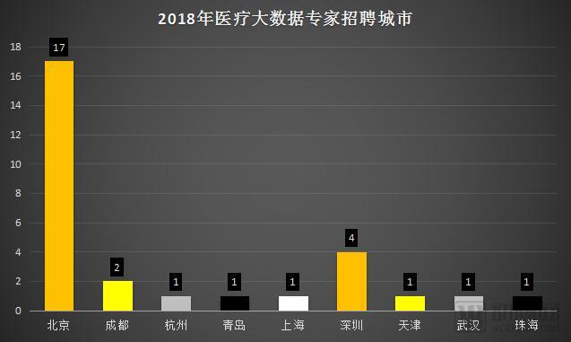 北京作为国内创业公司和资本聚集的核心城市,毫无悬念地成为了大数据人才中心,有多达17个职位都在北京。这里拥有嘉和美康、零氪科技、医渡云、华数康、康夫子等国内顶尖的医疗大数据公司。无论你是否愿意,医疗大数据的择业首选依然是北京。