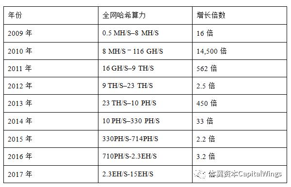 从创世区块开始,每年比特币算力都成指数增长。一些年份的增长还随技术的变革而发生飞跃式变化,比如在2010年和2011年,很多矿工开始从使用CPU升级到使用GPU,进而使用FGPA(现场可编程门阵列)挖矿。在2013年,ASIC挖矿芯片的引入,把SHA256算法直接固化在挖矿专用芯片上,引起了算力的另一次巨大飞跃。以一台挖矿畅销机型S9蚂蚁矿机作对比,其13TH/S的算力,已经超过了2010年比特币网络的全网算力。目前比特币的全网哈希算力达到了26EHash/s=26,000,000THash/s。按照1TH/S的硬件对应1000元人民币计算,全网算力对应的挖矿硬件成本接近260亿人民币。