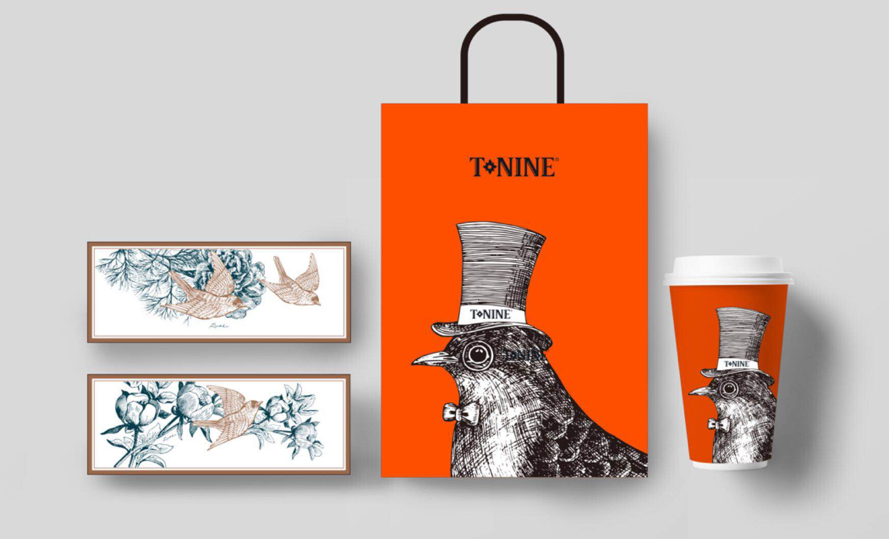系列的产品对应系列的包装,包装设计风格既能体现品牌调性,同时也是和消费者的第一次沟通。T9的系列包装设计获得了红点设计奖——以全球各个国家具有代表性的文化符号为设计元素,比如中国的龙,美国的白头鹰等。橙色,是T9的品牌主色调,代表幸福的知更鸟为品牌IP形象,传递自然、健康、艺术的品牌调性。