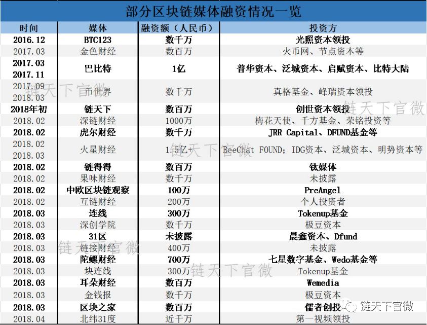 行将就木还是顺势发展?从去年年底到现在,区块链媒体汇聚了太多资本的目光,最明显的表现是在前者相继获得后者融资消息不绝于耳后,行业从业者已经从频频发出“一个刚成立不过俩月的区块链自媒体竟能融到这么多钱”惊叹到现在,大家已经不足为奇。