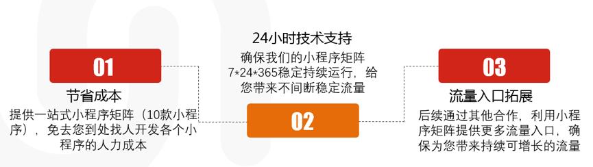 “小程序流量矩阵”,即以多个小程序整合联纵的方式,进行一系列小程序整合,可分别将不同小程序进行推广。同时支持各个小程序相互导流,灵活满足企业内不同小程序进行流量整合。通过小程序矩阵流量营销,可帮助企业进行品牌宣传&商品推广。