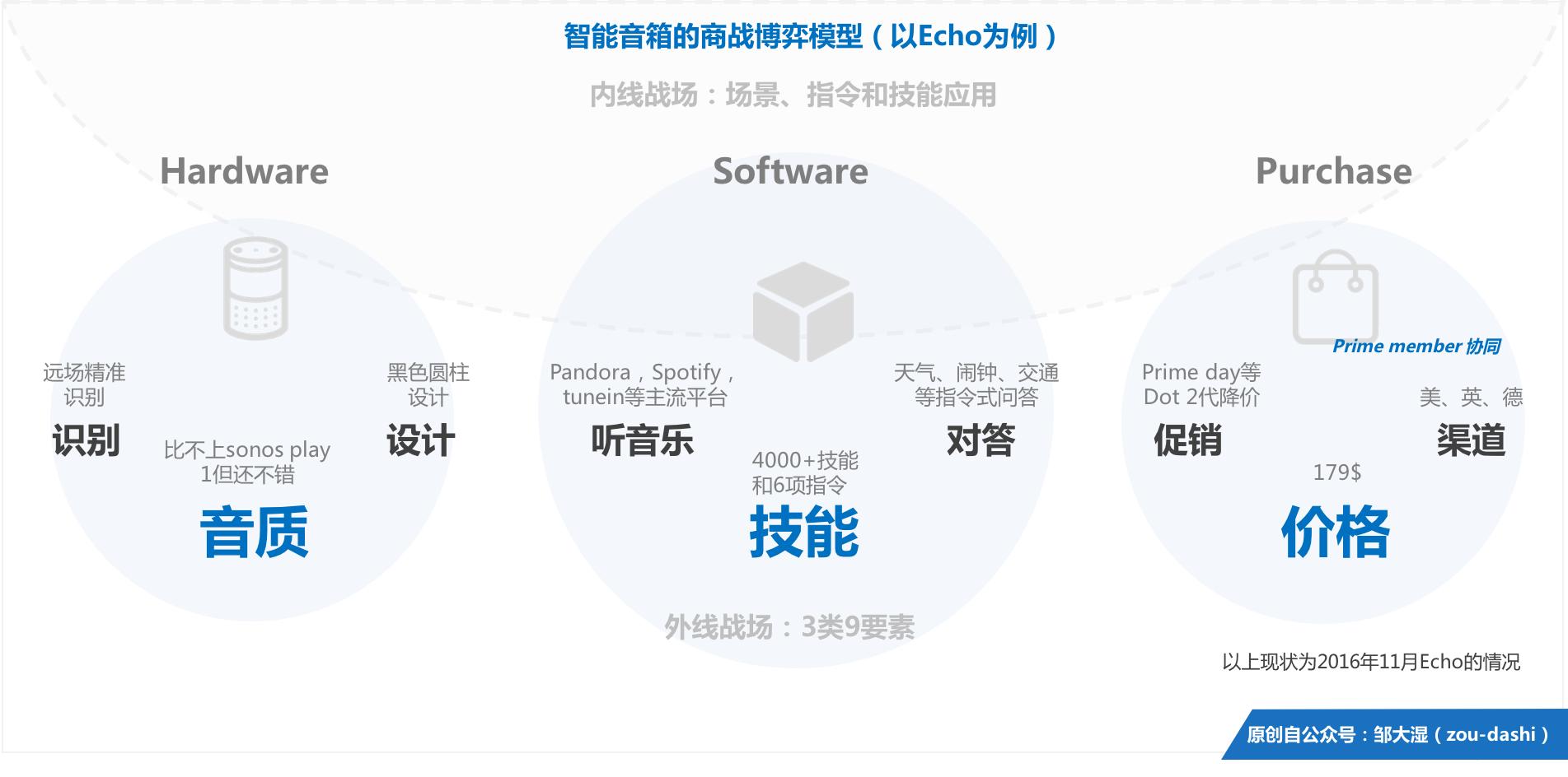 如果还要对阵列攻防深入探究,那底层的对抗,就是产品要素的对抗。从性能、价格到外观的要素较量。这部分的演绎,我们在之前的报告中,有非常详细的解读。(参考2017亚马逊Echo研究报告)