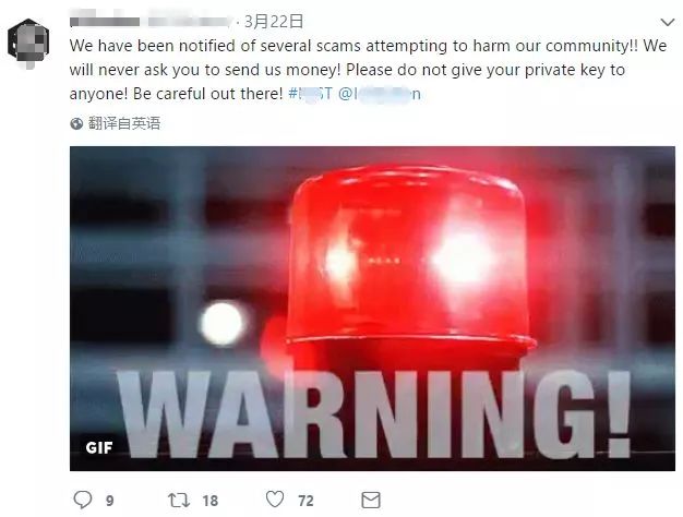 几乎所有的 ICO 项目,在开始有流量、有曝光之后,就会被各路骗子盯上,他们擅长的做法包括:1、假冒社交媒体账号,发布虚假消息骗钱;2、假冒空投,骗取用户私钥;3、假冒客服,骗取用户钱财。