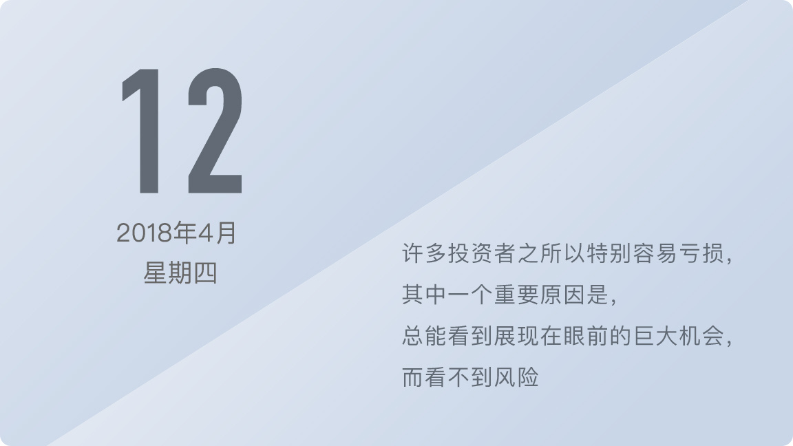 哪怕是近在咫尺的风险,恰恰是这些风险甚至是一些很细小的风险,终结了自己的梦想与幻想。一个好的投资者,总是先认真评估风险,通过对风险的规避,来抓住属于自己的机会获取收益。但遗憾的是,这类理性投资者所占比例,一般不超过5%。