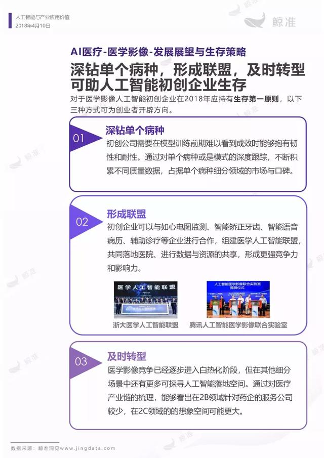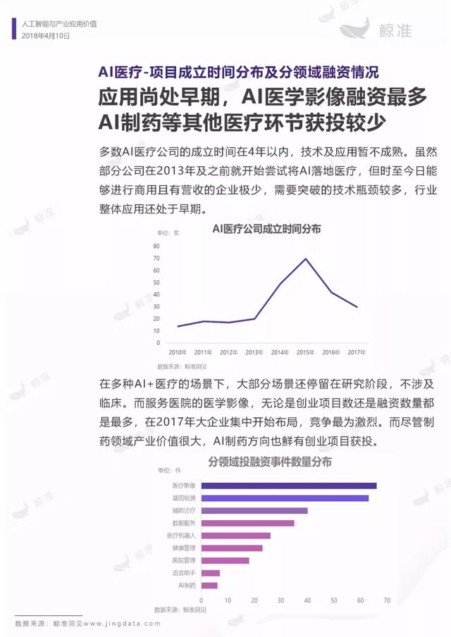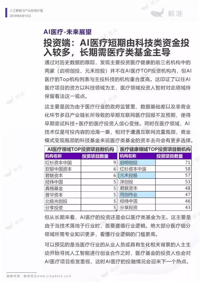 本报告重点展现医疗、教育、制造三个行业的人工智能应用落地情况,探索未来人工智能领域的投融资趋势及具体落地应用机会。旨在为关心人工智能应用层的相关人士梳理人工智能领域的行业应用现状,以及为投资人寻找下一个落地项目、创业者找寻进入场景提供参考。