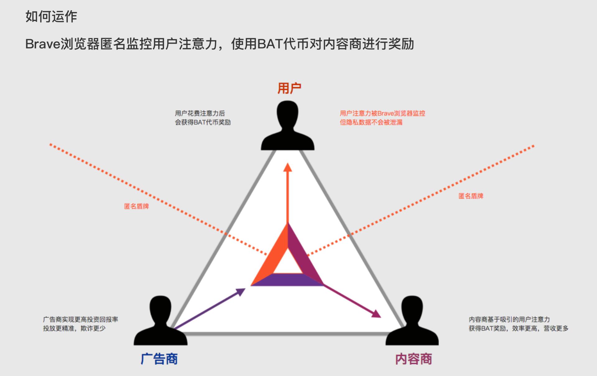 BAT(Basic Attention Token),是针对广告行业的数字代币。在这个项目中,用户对某一广告的注意力,会得到对应的BAT代币奖励。