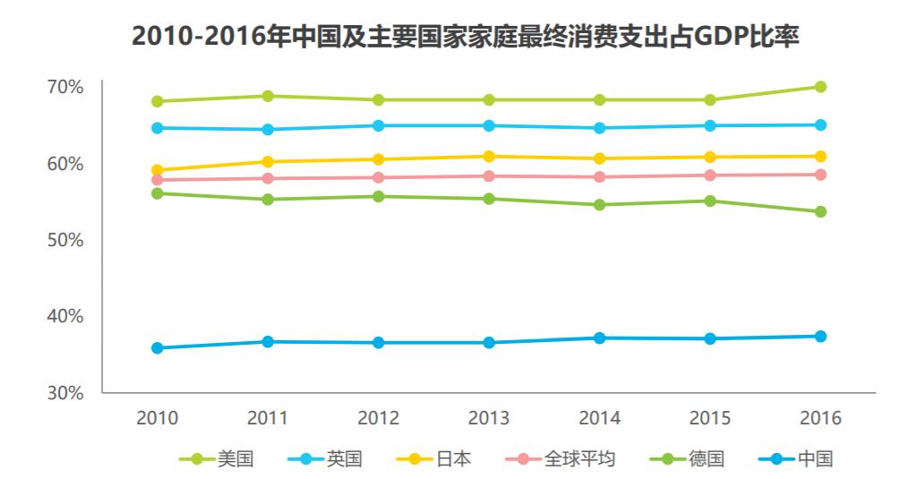 消费金融崛起的一个重要背景,是中国经济的结构化转型,其主要经济驱动力从投资转向消费。成少勇在朗迪峰会也指出,相比发达国家,中国消费占GDP的比率较低,且与世界平均水平存在差距。