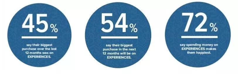 // 72%的受访者表示关于“体验”的消费是最能令自己开心的。