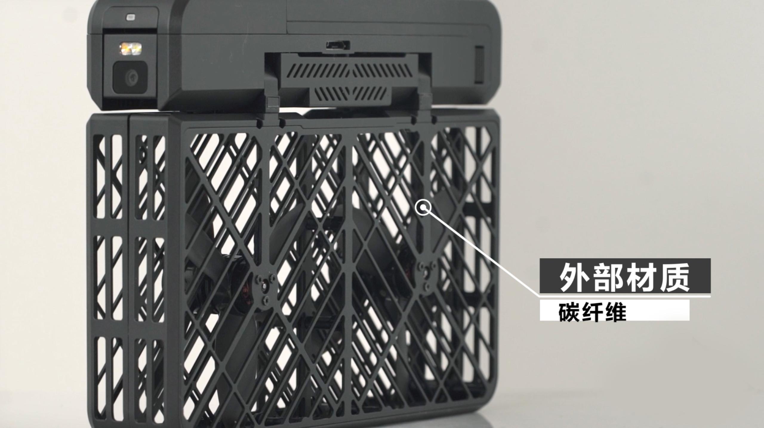 刚拿到它的时候第一感觉就是轻,第二感觉就是塑料的不抗摔吧。了解过后才知道,小黑侠外部是碳纤维材质,既保证了轻便、又有了十足的韧性,正常情况下的磕碰和降落都没有问题。