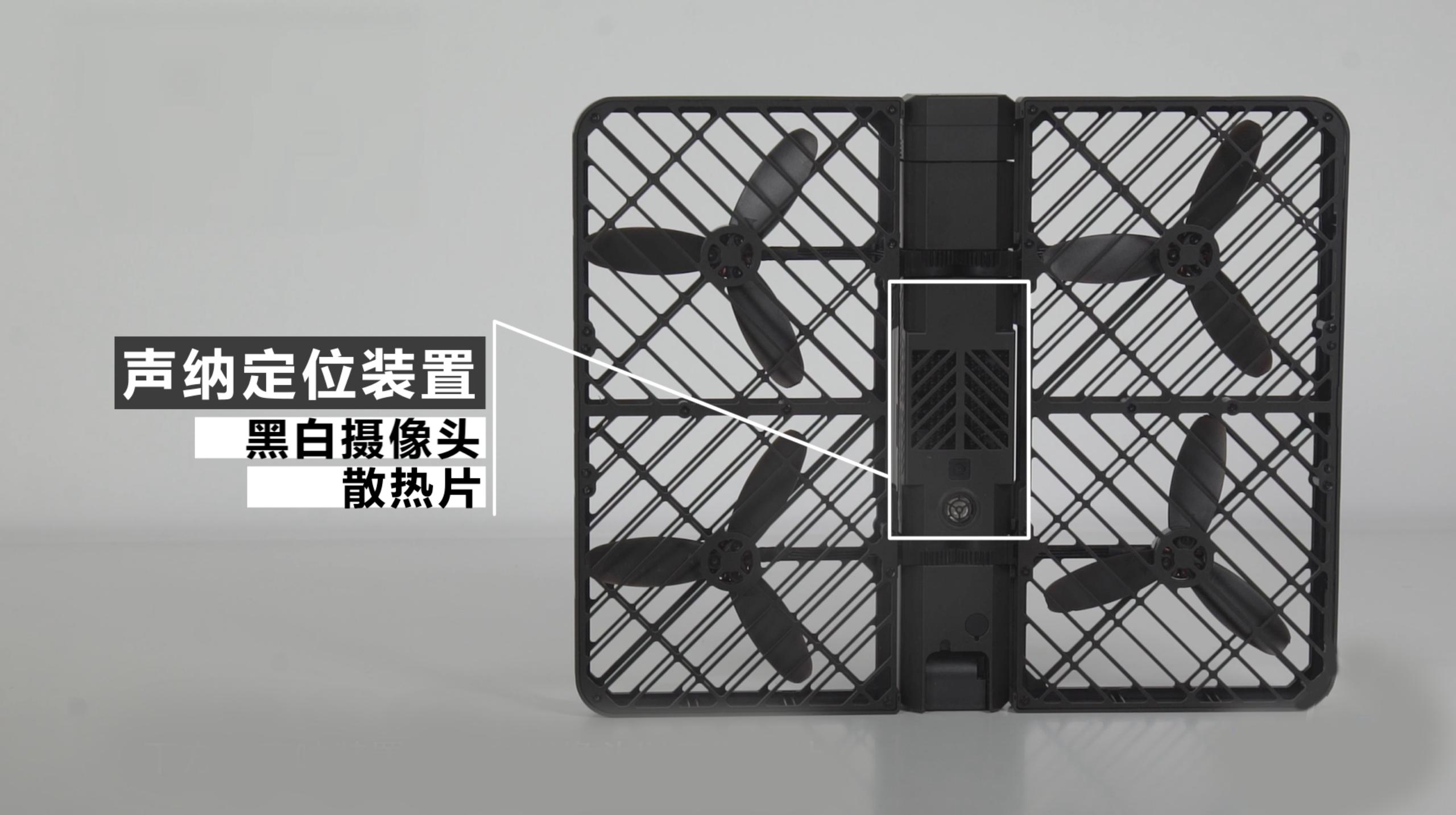 小黑侠上方是可拆卸的电池及电源键,下方是声呐装置和黑白摄像头以及散热片,且并没有GPS功能,只会通过声呐装置和黑白摄像头来确定高度及位置的。