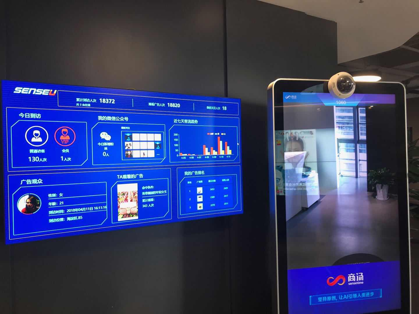 商汤科技智慧零售业务在商超的样机,通过摄像头识别用户,并将用户数据和商超会员体系打通,推送广告。