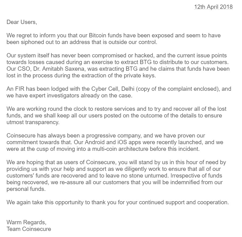 印度交易所Coinsecure被盗438个比特币,疑是监守自盗