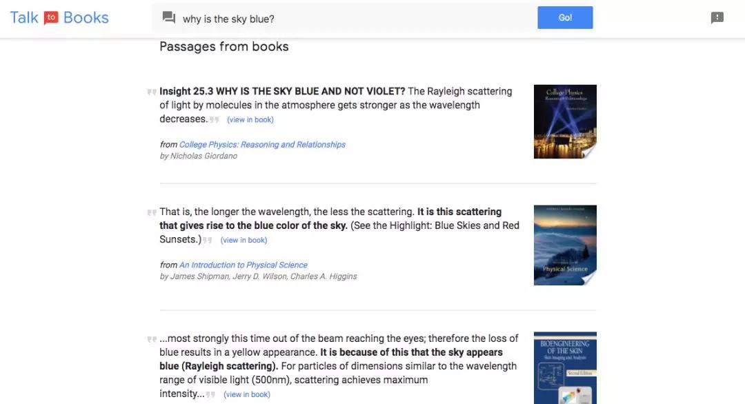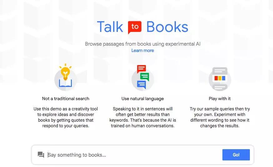 “Talk to Books”可以让用户与用机器学习训练的算法进行对话,该算法可以从人写的文本中找到相关段落的答案。