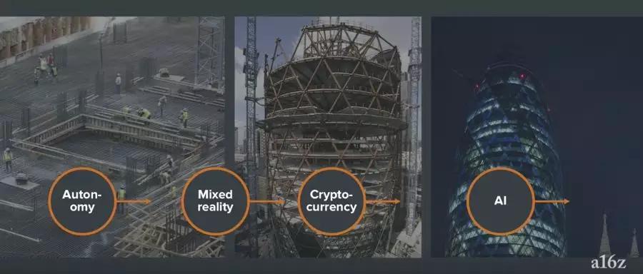 对于“区块链技术/加密货币”来说,是脚手架已经被拆除了的阶段。对于人工智能来说,塔楼已经建好,租户正逐渐入住塔楼。