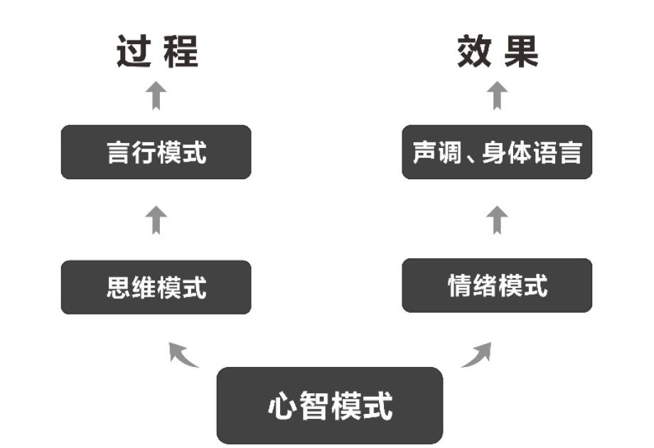 心智模式还操控一个人的情绪模式,情绪模式影响人的声调与身体语言,并对事情的效果起到决定作用。也许你经历过这样的一个情况:有个人从你身旁经过,匆忙间不小心打翻你手中的一堆书籍,而他却以一种无所谓的态度跟你说了声“对不起”敷衍了事,你心里自然是觉得不舒服的,而当他意识到你的不满时,却抛出一句“我都说对不起了,你还想怎样”,试问此时你的感受是不是会更加糟糕?