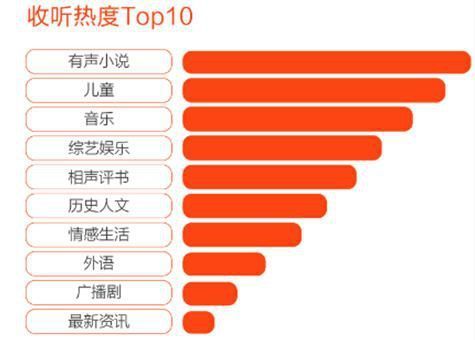 根据喜马拉雅研究院统计的数据显示(如图上),在收听热度的类目排行榜上,有声小说高居榜首,成为移动音频第一大类目。同时,数据显示,在有声书的高频用户中,平均每人每天听书时长超过了113分钟。儿童类、音乐类、综艺娱乐类、相声评书类分列榜单2~5位。