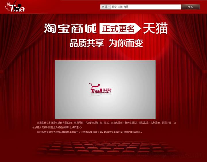 确实,自从淘宝商城 2011 年 6 月从淘宝网独立出来之后,一直还保留着原来淘宝网的痕迹。但淘宝网做小商品交易,乃至后来频出的商品品质问题,实在与淘宝商城一直以来规划的品牌路线相去甚远。他们需要为自己打造一个全新的品牌形象。