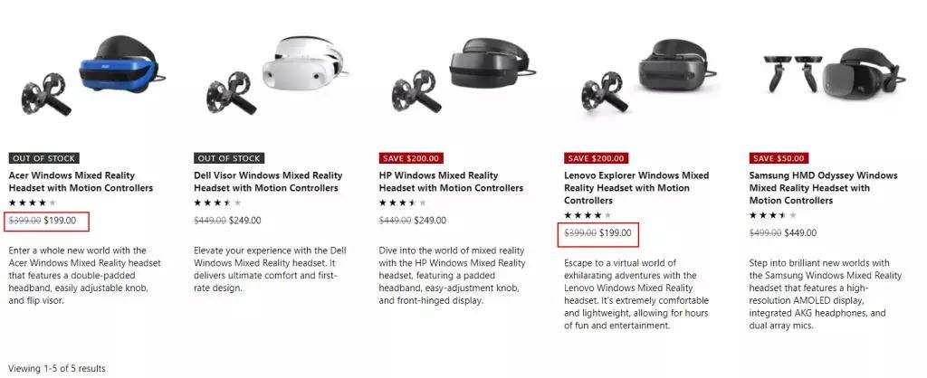 同时,微软MR头显起售价为399美元(手柄套装版,无手柄最低299美元),虽然这样的价格和Oculus相比并没有明显优势,但微软已经在微软官方商城和亚马逊以接近50%的折扣进行促销,力度可谓不小。