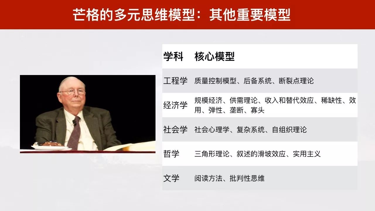 芒格同样对其他领域也非常关心,这是他提及的其他重要模型,如下图所示: