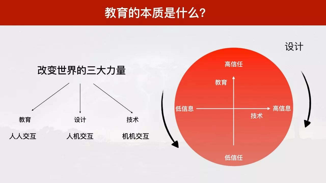 在《人性与暴力》一文中,我曾经写过,改变世界有三大力量:教育、设计与技术。教育的本质是人人交互。 它促成了人类社会从「低信任」区域到「高信任」区域流通。文明社会,就是人与人之间有信任,反之,蛮荒世界,用拳头说话。技术的本质是机机交互。 它促进人类社会从「低信息」区域到「高信息」区域流通。