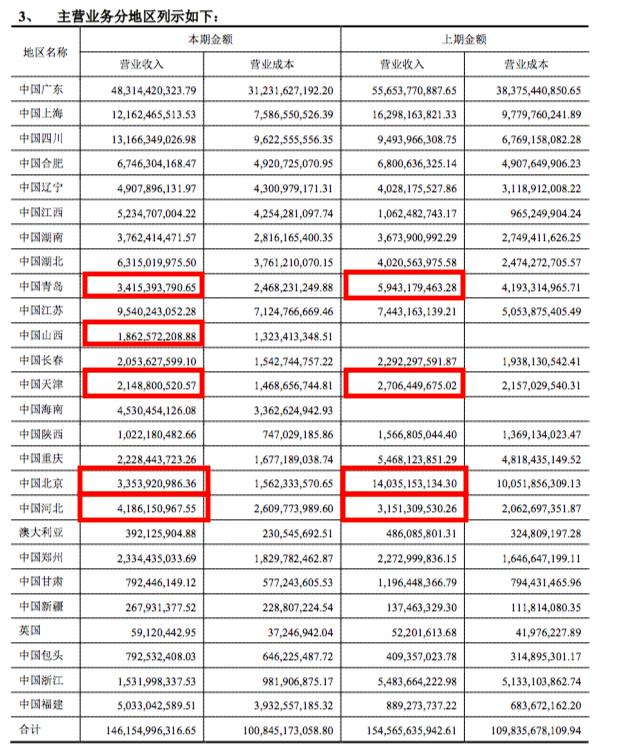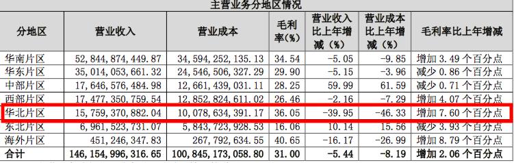 然而分区域来看,还是能看出问题的所在。保利地产整个七大片区中,华北片区营业收入同比下滑了40%,为下降幅度最大的区域。