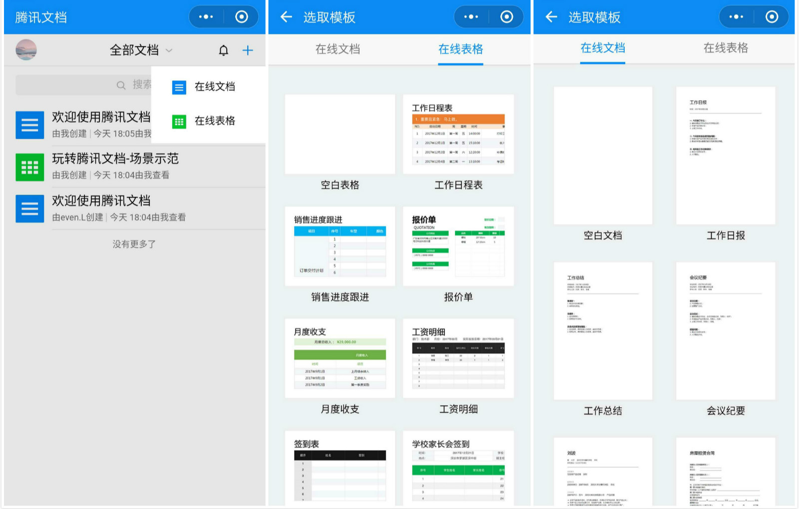 图为腾讯文档小程序使用界面