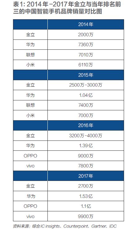 但2017年手机寒冬降临,这一年全球智能手机迎来首次负增长,国内手机出货4.91亿部,同比下降12.3%。刘立荣对金立2017年的出货量预期是5000万部,但据研究机构Gartner数据,实际结果是2700万部。