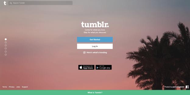 Tumblr的登录按钮也位于中心位置,和注册按钮平行。