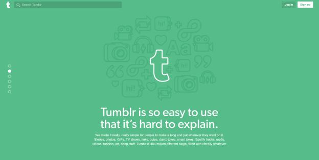 直接访问主页的人中,有很多可能不是已经注册过的用户。一些人也许只是想要快速注册一下,但有些人只是想要了解更多内容。也许,在他们确认网站是否适合自己之前,他们不会愿意填写注册信息。对于这部分用户,理想场景就是可以免费预先浏览界面。如果需要访客填写个人信息才能呈现出某款产品,那么这时候主页就是在推销价值,而不是呈现价值。主页也可以选择不要求访客填写个人信息,而是请求设置过滤标准。Tumblr、Pinterest以及Facebook都是以不同的方式应对这类型的用户。如上图所示,Facebook将所有的解释文字都设在左对齐位置。Pinterest以及Tumblr则单独创建了一个“了解更多”的行为召唤,从而引发专门的“了解更多”体验。Pinterest还设计了一个红色的“How It Works”按钮,而Tumblr则在页面底端设置了一个可点击的绿色长条,解释“What is Tumblr”(什么是Tumblr)。这两种方式都是用来解释产品的用途。