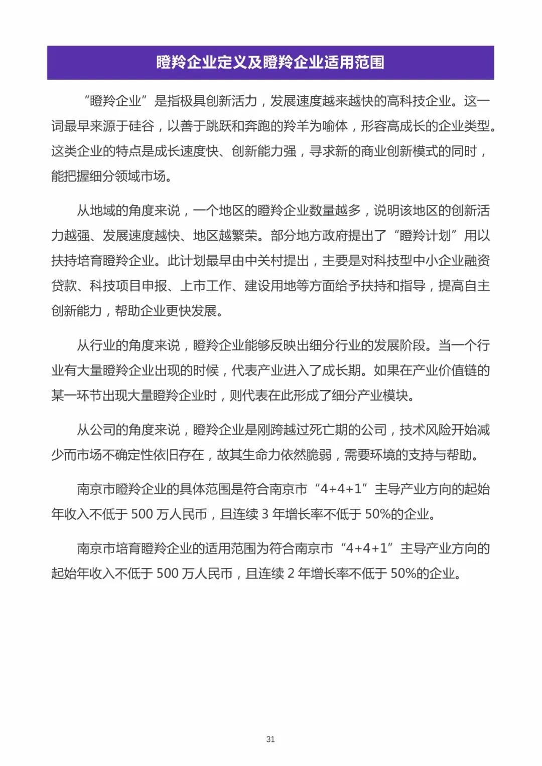 《南京市独角兽、瞪羚企业发展白皮书》,旨在发现和挖掘南京市独角兽和瞪羚企业,探索南京市未来重点关注的产业方向与领域,并通过政策创新支持其在南京市持续快速发展,着力培养其成为南京市创新型领军企业,鼓励这些优秀企业发挥创新引领示范作用,带动南京市产业结构优化、技术创新、企业集聚、人才培育。
