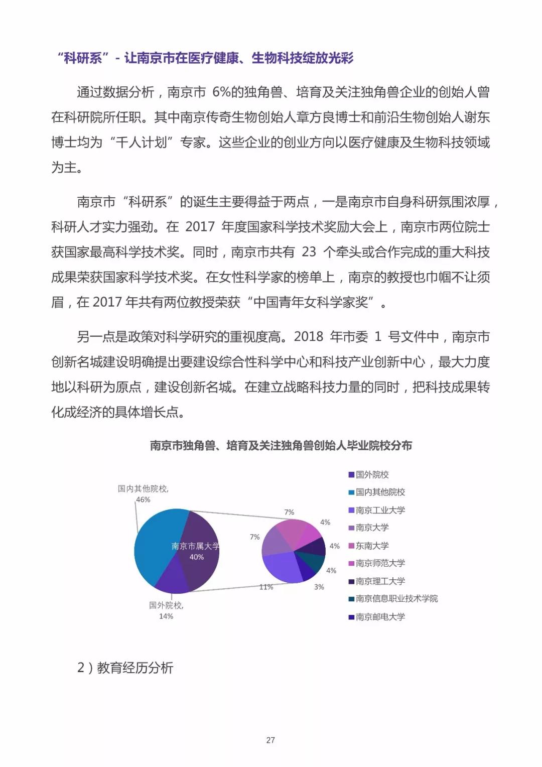 孕育多家独角兽企业的城市一般都具有创新生态良好、产业资源丰富、经济发展快速、科研机构集聚、高等院校众多等优势。同样,独角兽企业的发展也会反哺城市,将产生推动城市的创新技术产业发展和传统产业转型升级,吸引行业创新人才集聚和流动,实现科研成果转化等积极的效果。而南京就是这样的一座城市。