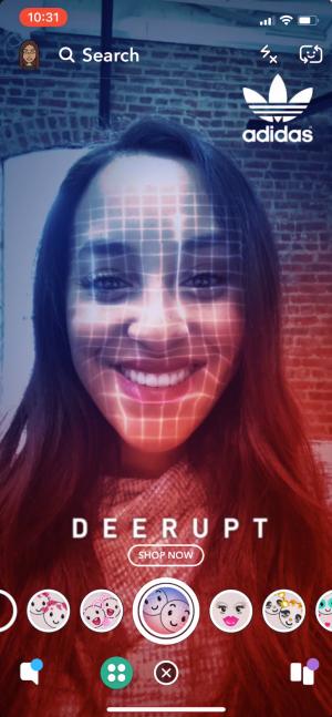 目前Shoppable AR Lens已经与四款品牌达成了合作,包括Clairol,King,STX Entertainment和Adidas。在首次与阿迪达斯的合作中,Snap用户将获得Deerupt跑鞋的AR体验,并且可以直接跳转至Adidas的网站。