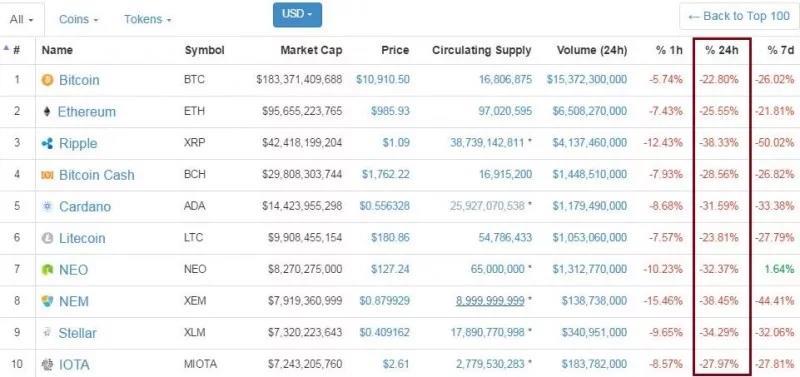 2018年一季度,数字货币迎来大熊市。数字货币的价格基本回到了牛市之前的价格,有的数字货币价格跌幅甚至达90%以上。