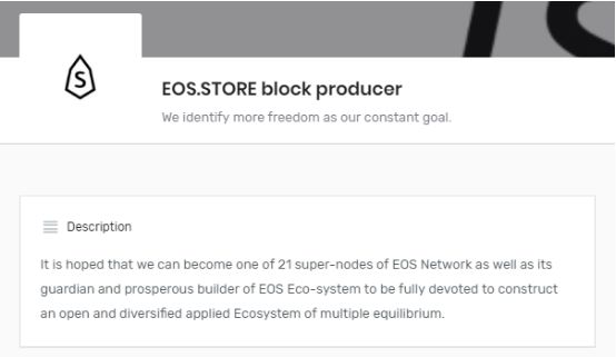 EOS.STORE的节点描述为英文,而且用了super-nodes这种很不专业的翻译。EOS本身是一个偏中心化的系统,所以社区内一直在尽量避免超级节点(super nodes)这种偏中心化的词汇,而是用区块生产者这种更中性的词汇。