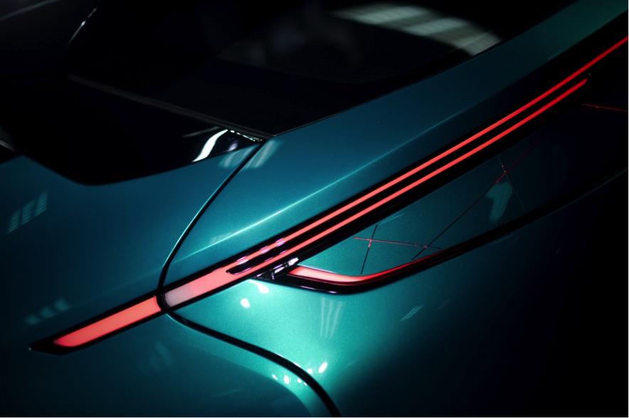 据讲解员介绍,与传统汽车不同的是,这款汽车有着多线条的设计。比如,在前脸、尾部上多次出现的三组标志性“连接线”设计,象征着“人与人”、“人与车”、“车与车”之间的互联。