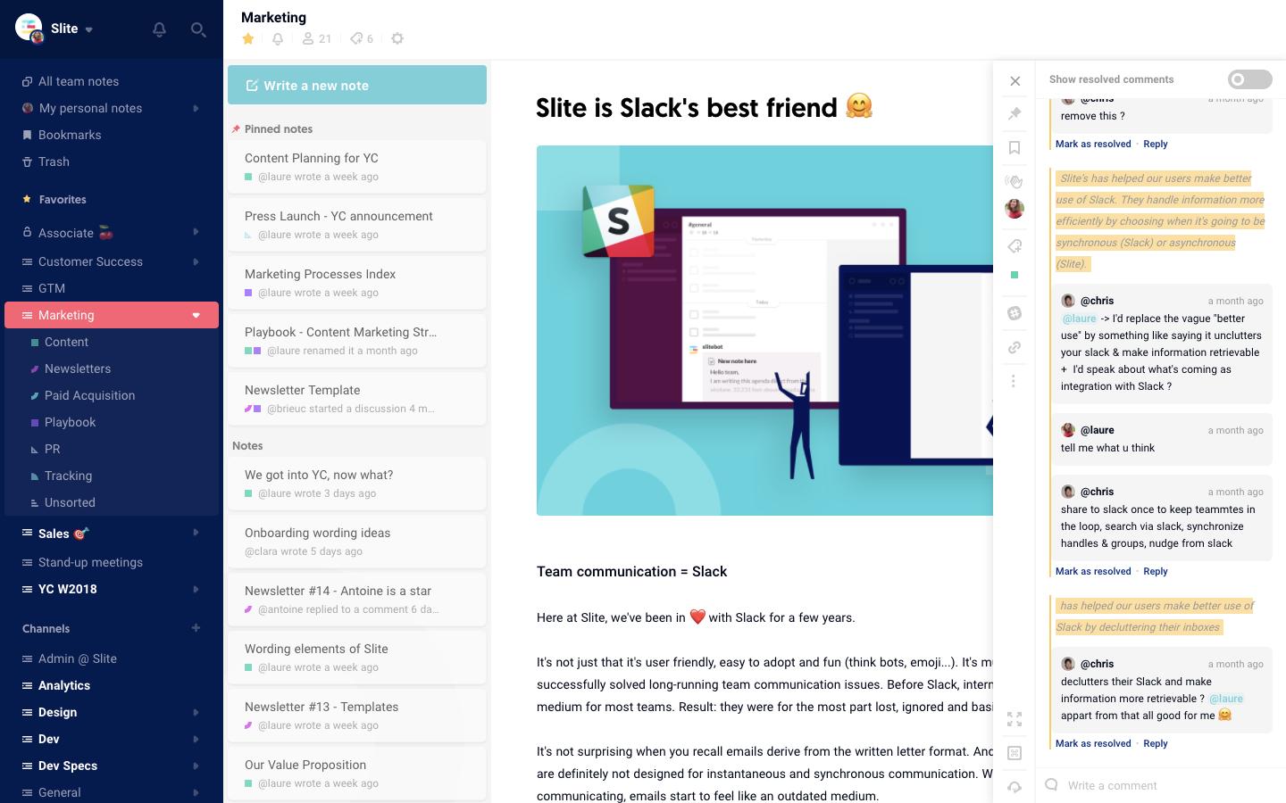 Slite 认为,在文档领域,Google Doc 和 Evernote 的功能过于复杂,是为个人而非团队构建的。创始人 Christophe Pasquier 举例,这些应用的编辑权限和文件夹结构都很难管理,合作流程麻烦。而对于团队来说,协作软件越复杂,沟通就越困难。