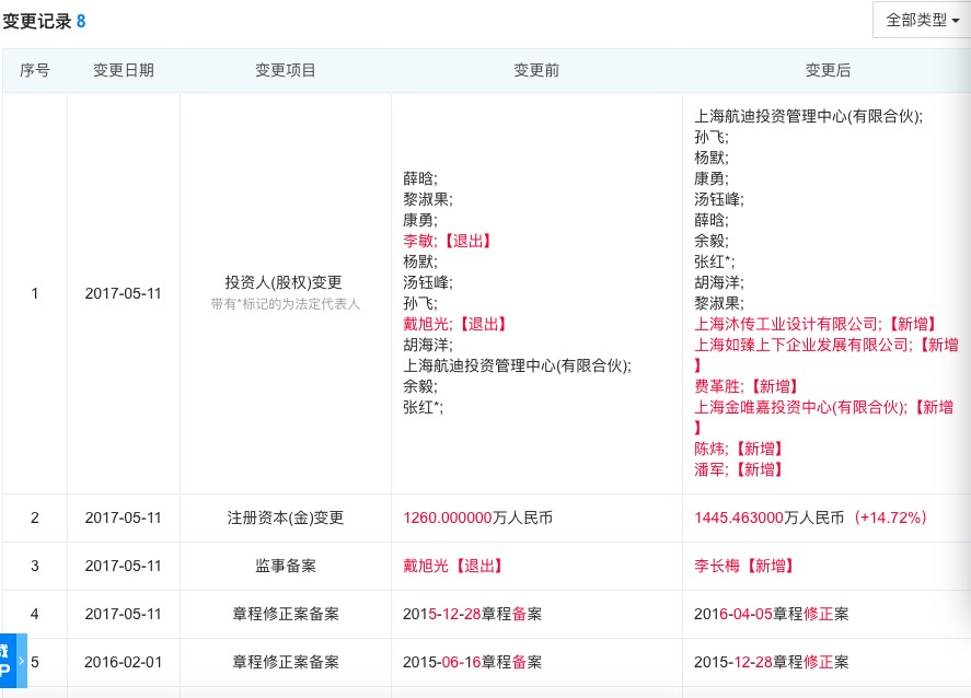 帅初在快贝的股权变更