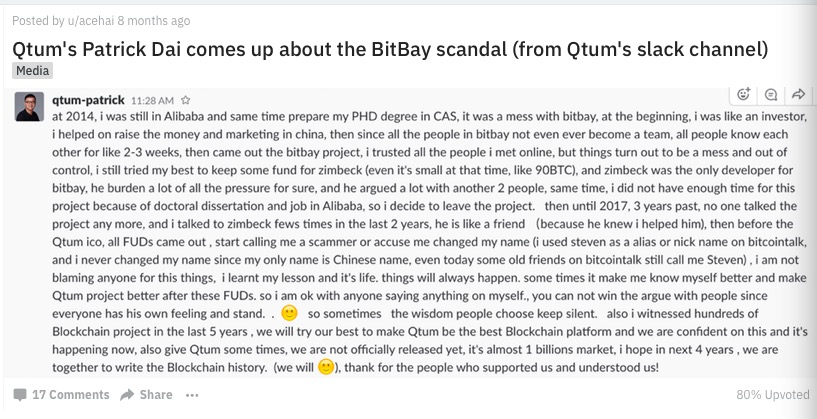 外媒《意见》曾报道过帅初的另一桩丑闻。2014年,一个名叫StevenDai的人参与了名为Bitbay的项目,该项目筹集了1300个BTC,然而Steven Dai却很快将其中的200个BTC转移,随后又大量抛售Bitbay发行的代币并放弃该项目,此事被认为涉嫌欺诈。