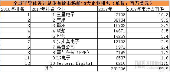 据Gartner调查数据显示,2017年全球采购芯片最多的十个公司中有三家中国公司,分别是联想、华为、步步高,排在世界第4-6位,中兴并未入榜。