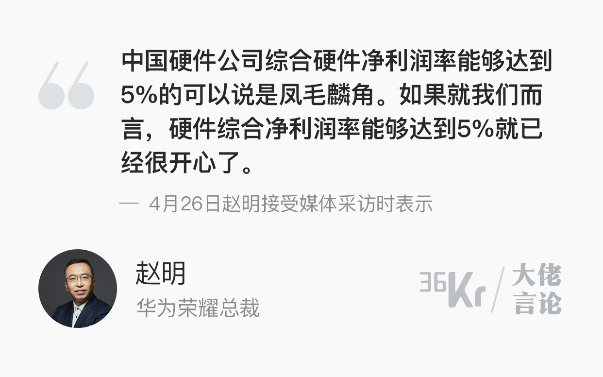 大佬言论 | 赵明:荣耀硬件综合净利润能达到5%就很开心了